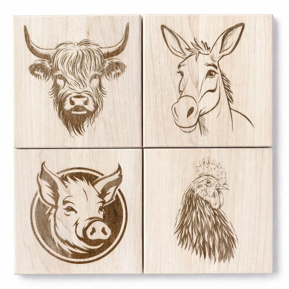 JANUARY SALE: 25% Off (Discount applied at checkout.) Handcrafted Laser-Engraved Wood Coaster Set - 4" square